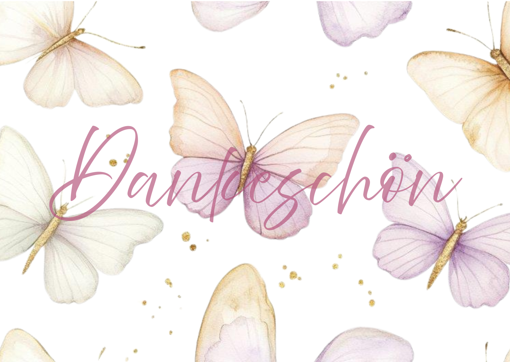 Zarte Schmetterlinge in Aquarelloptik tanzen über diese liebevoll gestaltete Karte – ein federleichter Gruß, um einfach mal „Danke“ zu sagen.