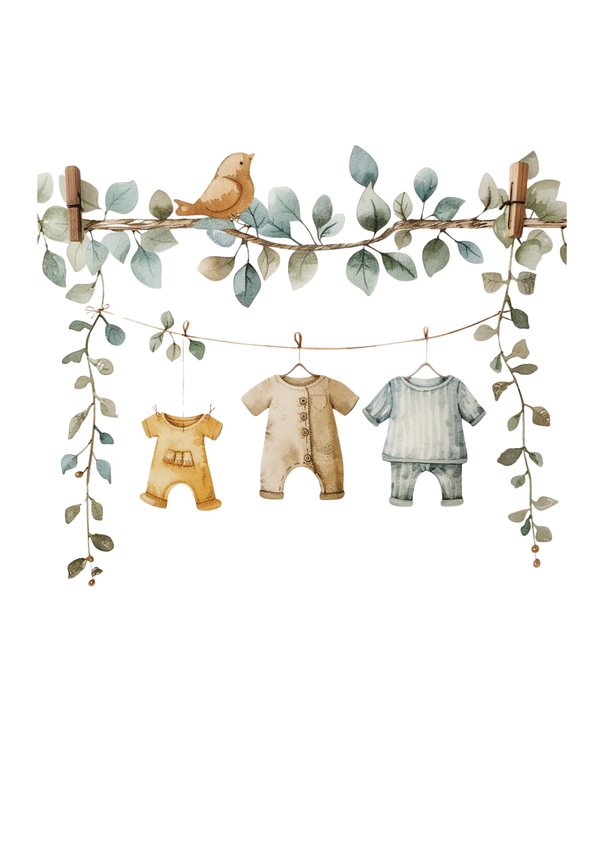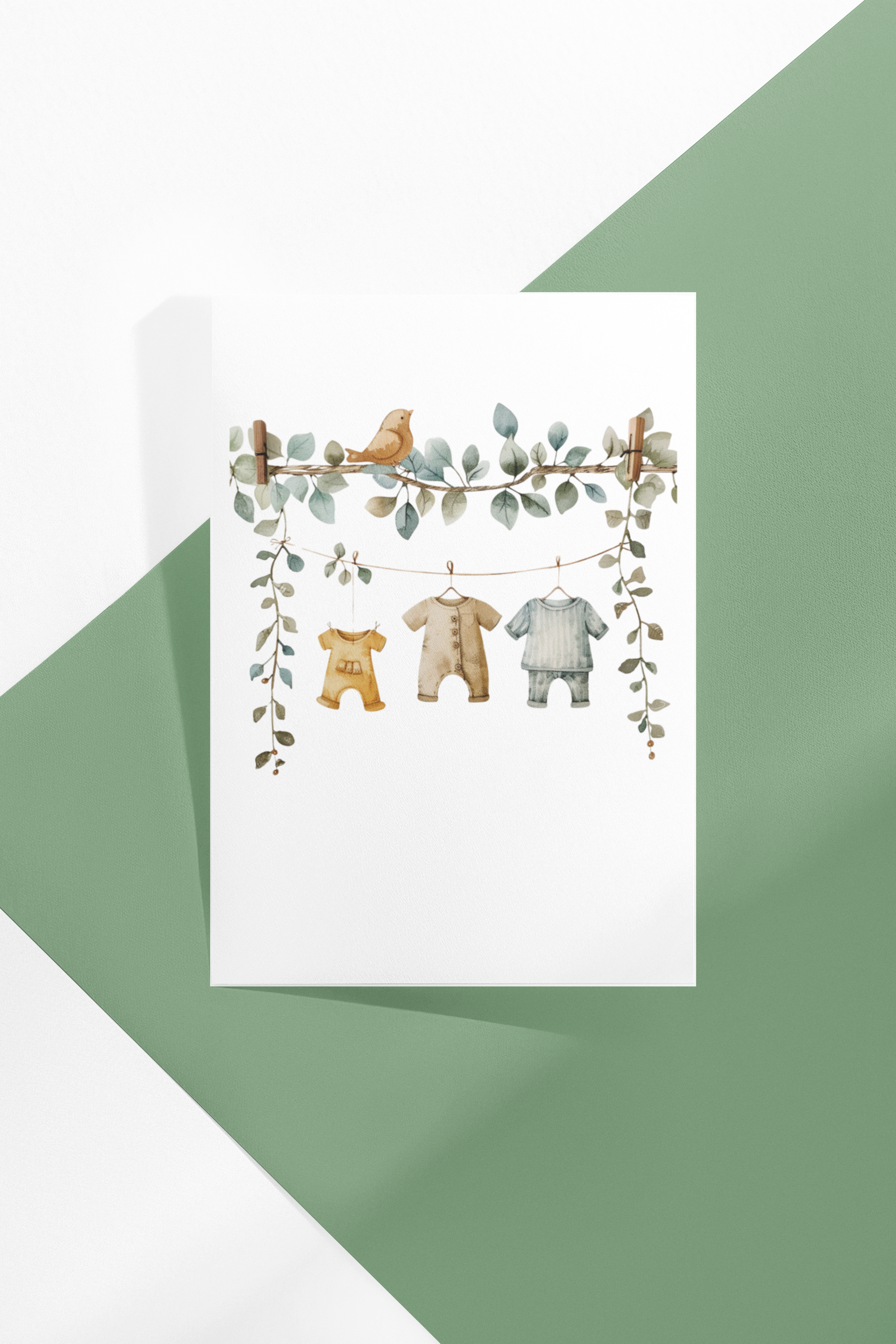 Zarte Blätter, süße Strampler und ein kleiner Vogel: