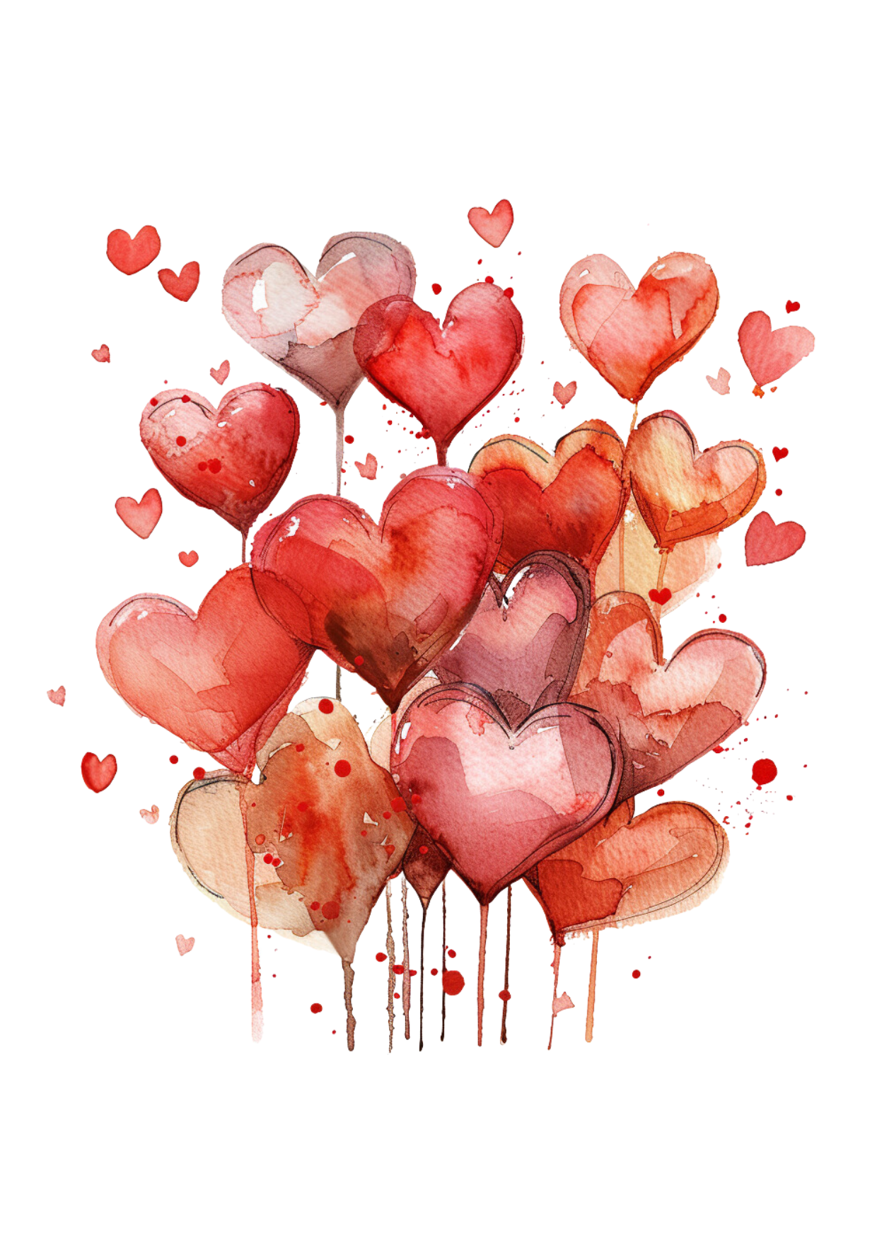 Ein Strauß Herzluftballons hebt ab – voller Liebe, Leichtigkeit und Farbe. Diese Aquarell-Grußkarte ist perfekt für alle, denen du ein Lächeln ins Gesicht zaubern möchtest.