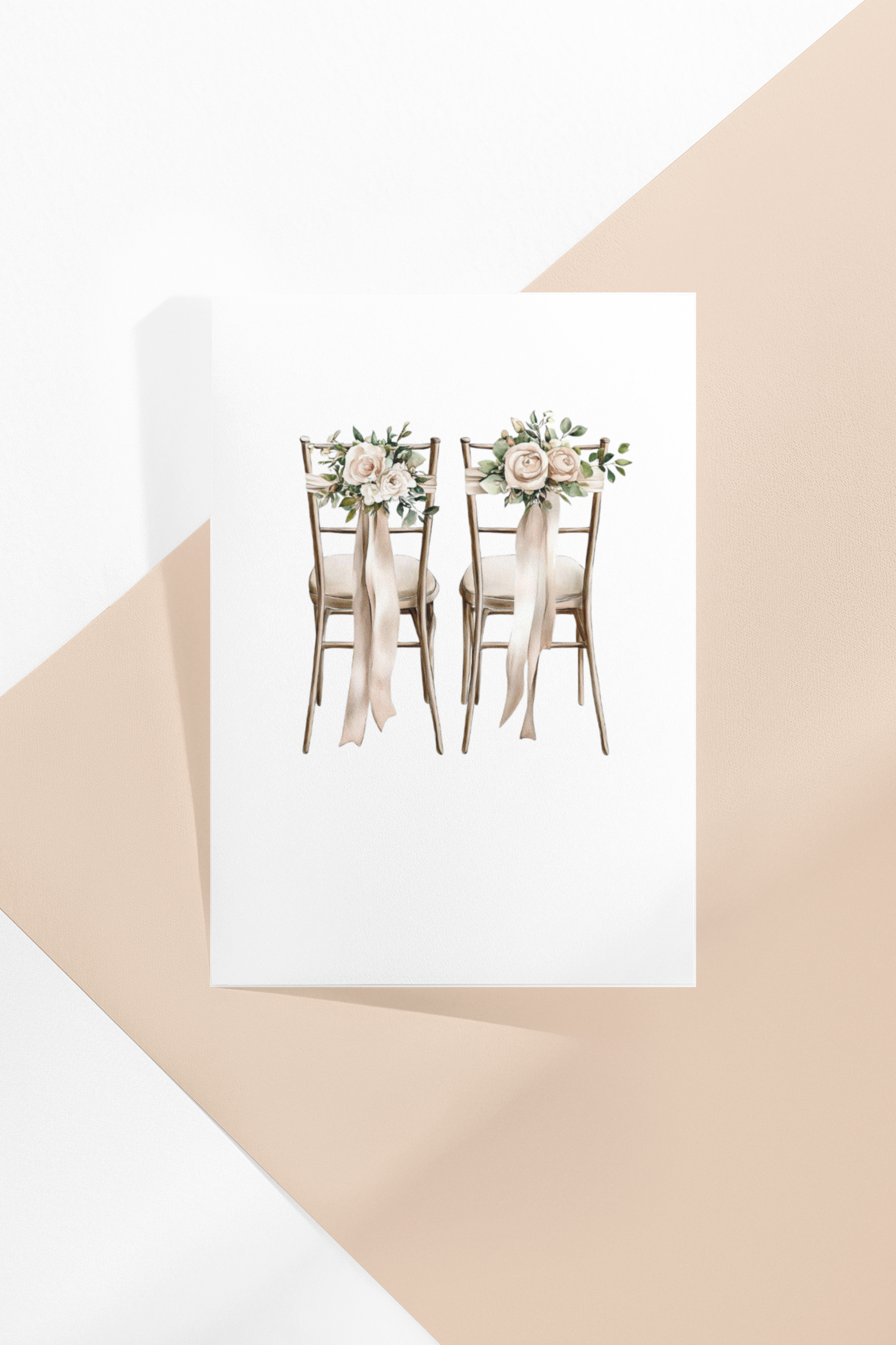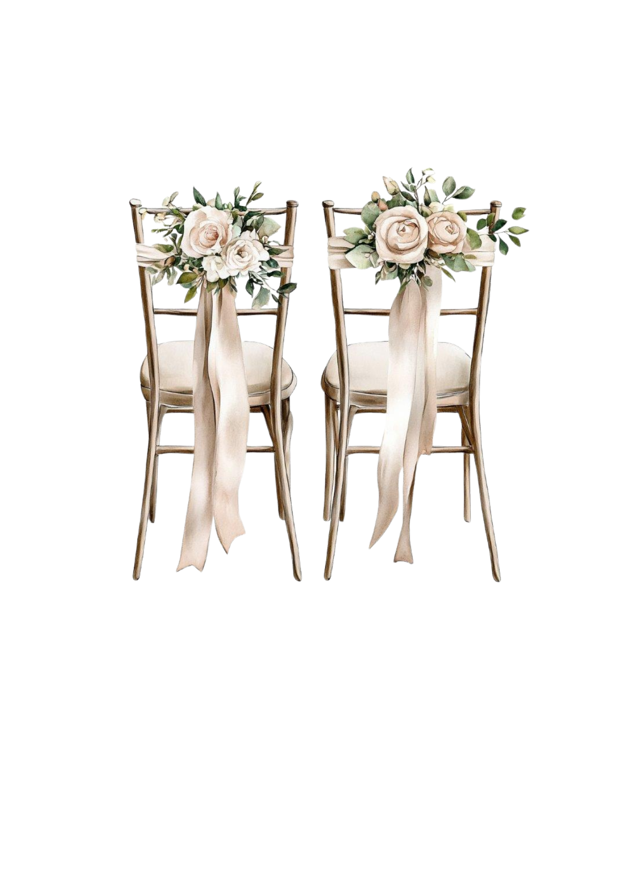 Zwei elegant geschmückte Stühle – ein stiller, wunderschöner Moment voller Liebe und Vorfreude.