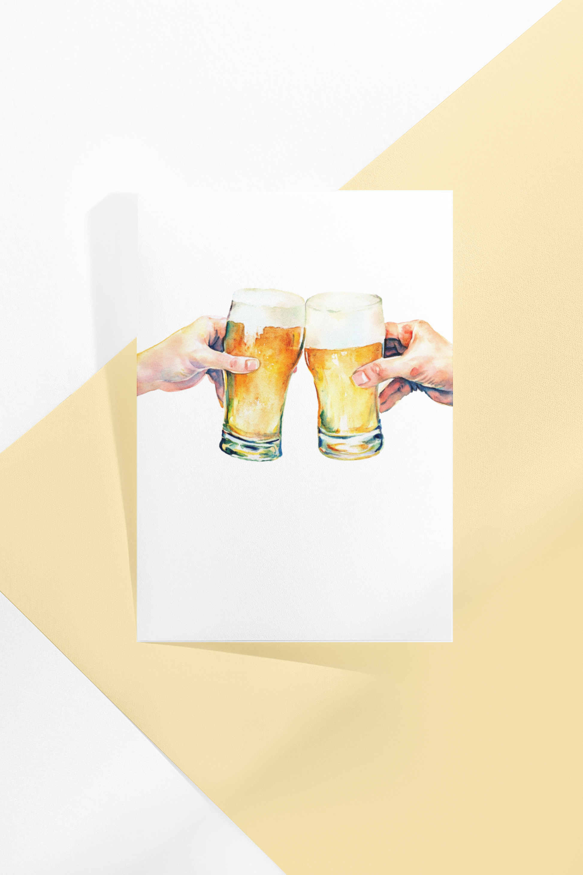 Zwei angestoßene Biergläser, festgehalten in einem fröhlichen Aquarellmotiv – perfekt für alle, die gerne anstoßen, lachen und das Leben feiern.
