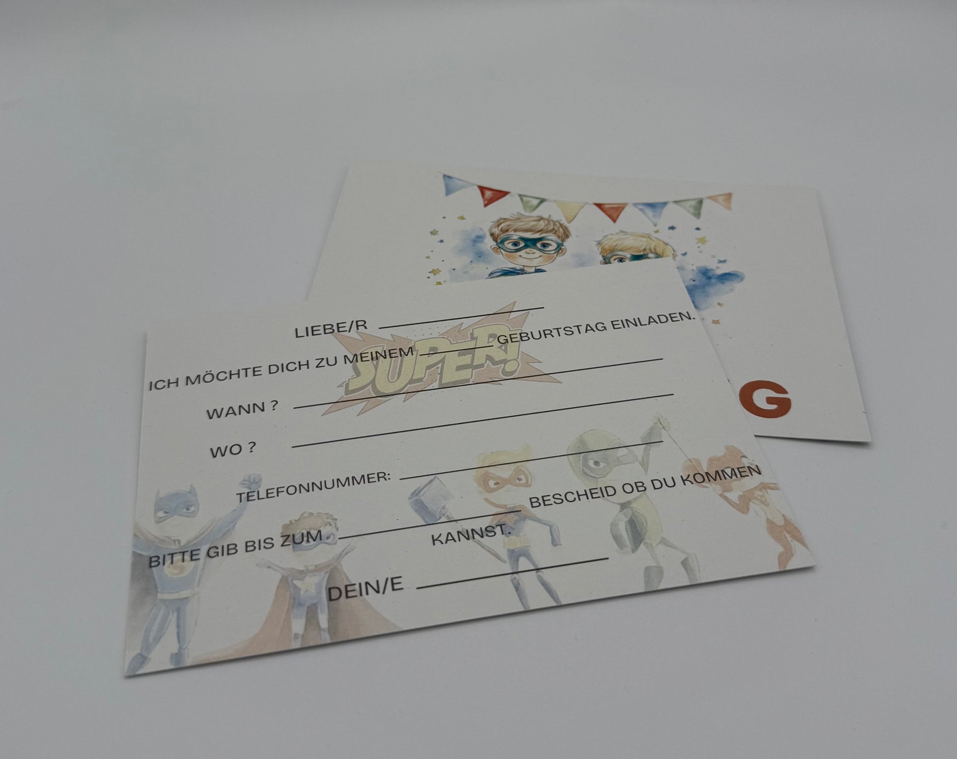 Diese Einladungen mit Superhelden kann von euch ausgefüllt werden.